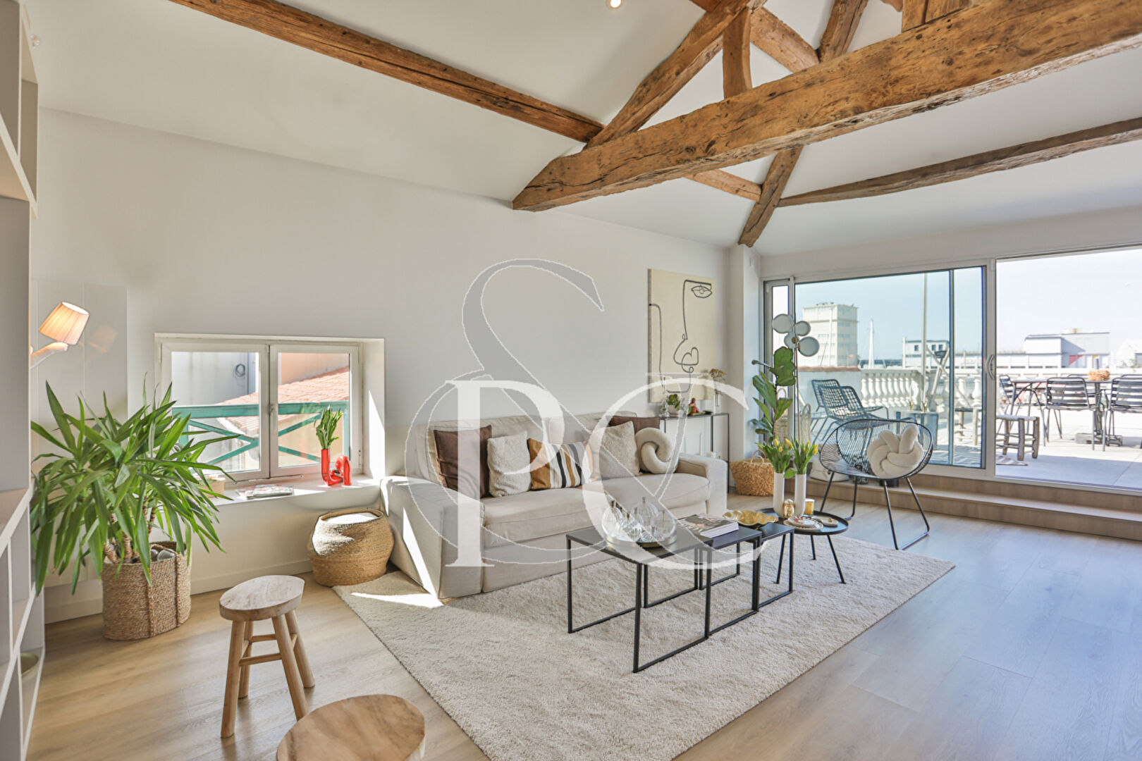 La terrasse de 43 m² s’impose comme un espace de vie à part entière, idéal pour recevoir, partager et profiter d’une vue exceptionnelle sur le port jusqu’aux couchers de soleil.