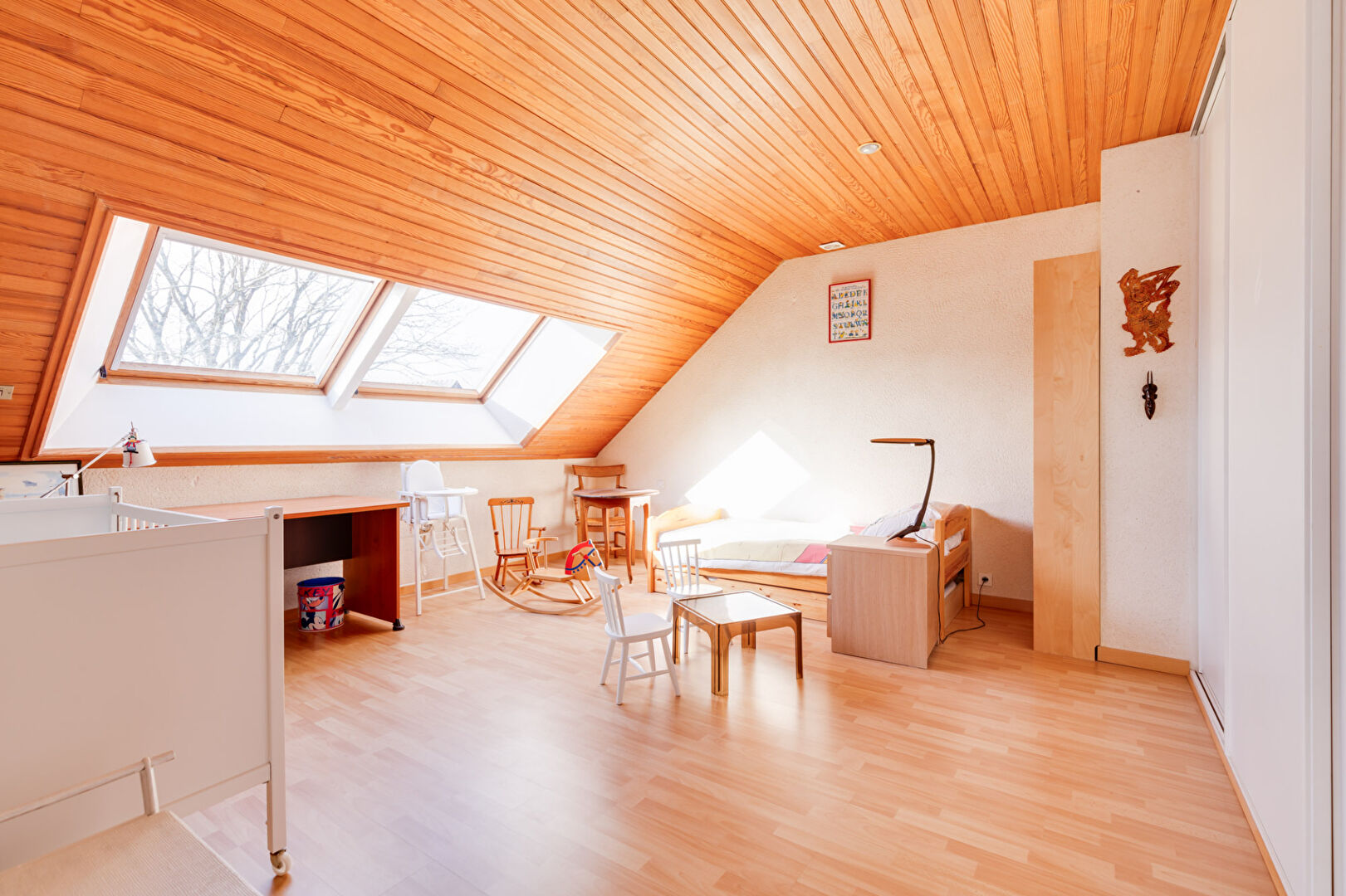 Au 1er étage, un palier distribue 3 chambres spacieuses (16 -18 -22 m²) sur parquet avec de nombreux rangements, un bureau, une salle de bains avec WC. Au 2ème étage, des combles isolées permettant diverses possibilités d’aménagement . Domotique –