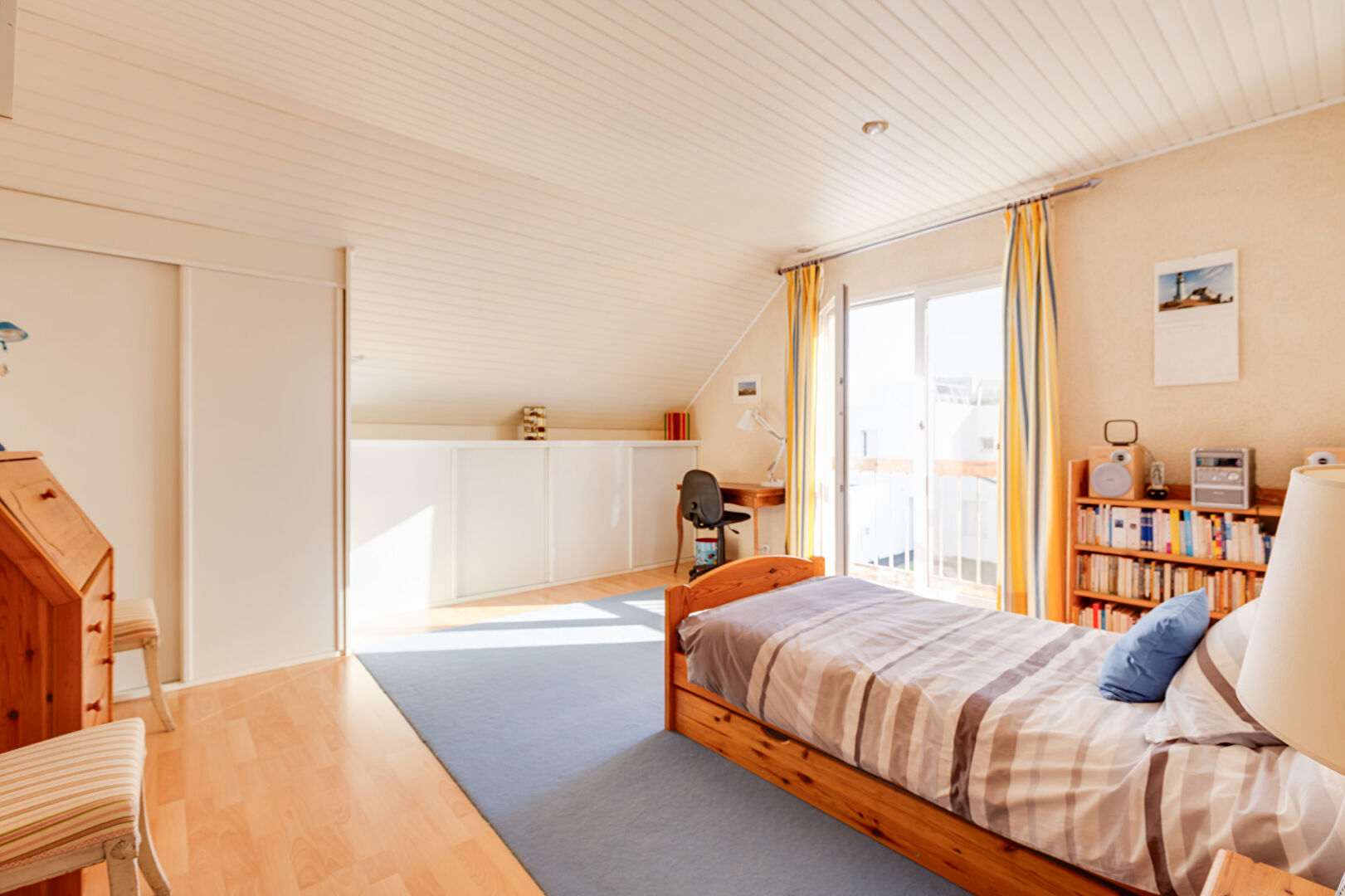 Une chambre avec son dressing et sa salle d’eau , un WC et penderies occupe le RDC.